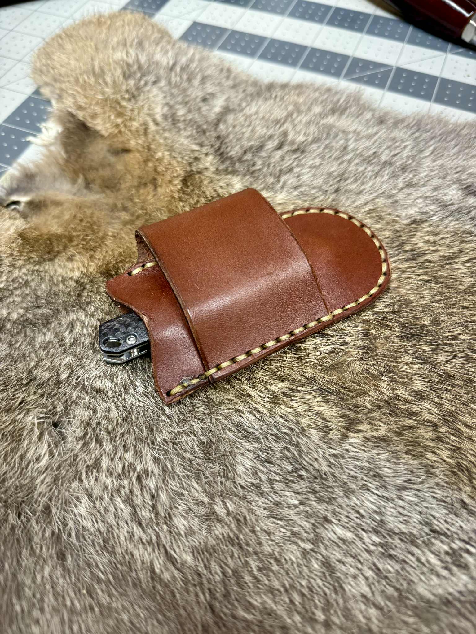Carry your blade with confidence and timeless style with our Basket Weaved Leather 90° Pancake Knife Sheath. Handcrafted from premium full-grain leather, this sheath features a classic basket-weave pattern that blends rugged durability with traditional craftsmanship. Designed in a 90-degree horizontal “pancake” style, it sits comfortably on your belt for easy access and a secure fit—perfect for everyday carry, outdoor work, or time spent in the field. The sturdy stitching and snug form ensure your knife stays protected while the leather naturally molds to your blade over time, creating a truly custom fit. Built for those who value function, craftsmanship, and legacy in every piece they carry.